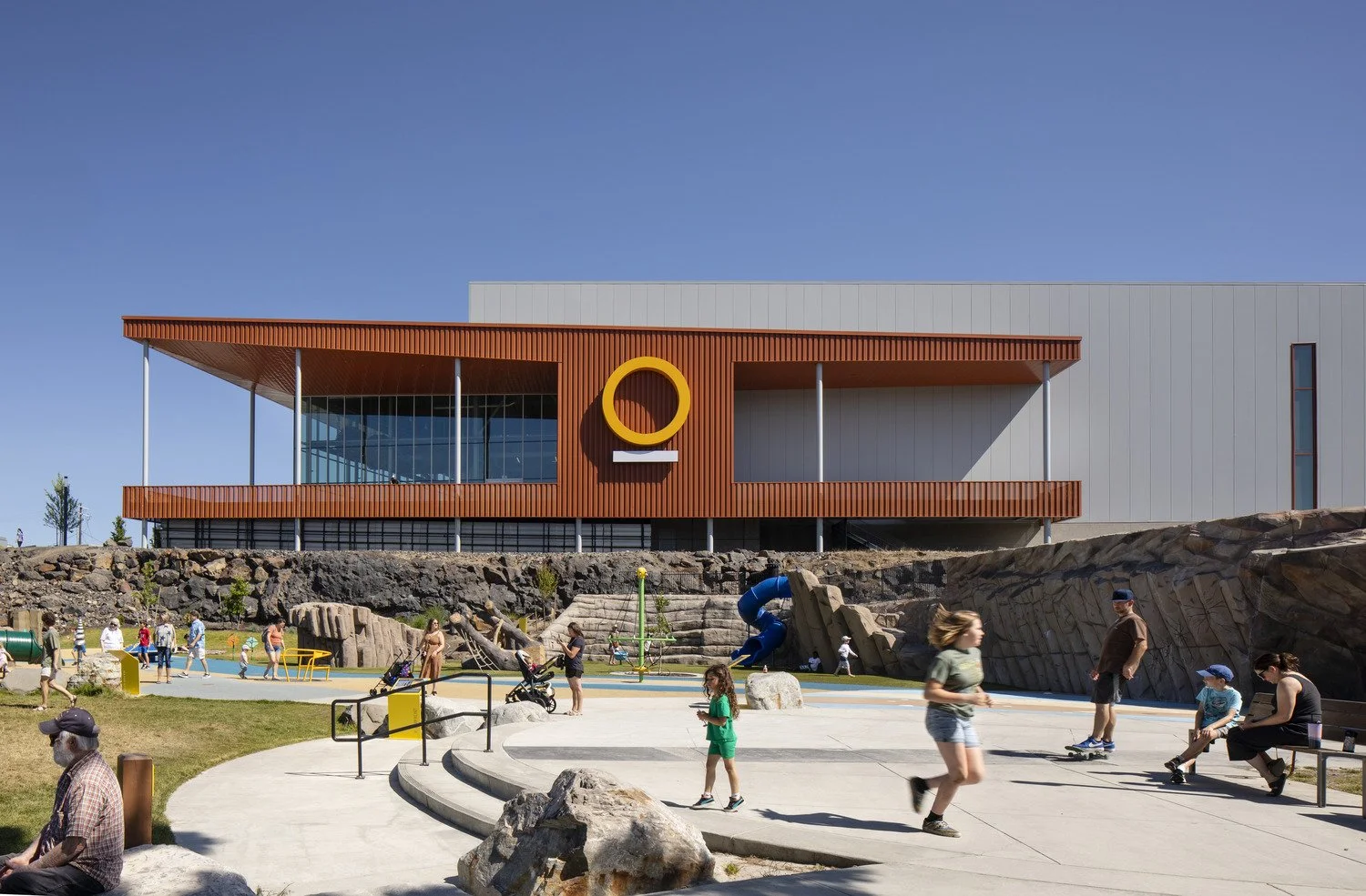 Jury Comments: Although a difficult challenge to successfully integrate a large program into a central urban location, The Podium does it with grace as it fronts the large athletic volume with a smaller public facing mass that skillfully addresses the urban fabric in its façade as well as its parti. The central spine that doubles as a venue space cleverly weaves the building’s internal circulation with that of a prominent public pedestrian circulation. At the north end, a large window facing the street allows for a peak into the building’s interior activities while the expansive glazing and deep overhang of the south porch provides a community space overlooking the park, river and city beyond. This mass is striking in color to act as a landmark but also aptly engages with the urban fabric on all sides.
